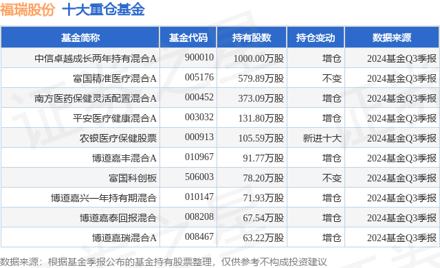 根据2024基金Q3季报公募基金重仓股数据,重仓该股的公募基金共37家,其中持有数量最多的公募基金为中信卓越成长两年持有混合A。中信卓越成长两年持有混合A目前规模为12.96亿元,最新净值1.661(1月10日),较上一交易日下跌0.66%,近一年上涨3.32%。该公募基金现任基金经理为魏来。