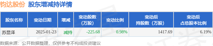 该股近半年内有股东持股变动,合计净减持225.68万股,股东增减持明细如下表: