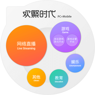 旗下平台包括YY直播、多玩游戏网、游戏运营平台、YY音乐、YY教育、YY手机客户端、100教育、虎牙直播。