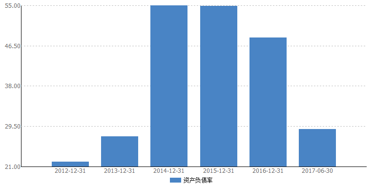 资产负债率是期末负债总额除以资产总额的百分比,也就是负债总额与资产总额的比例关系。资产负债率反映在总资产中有多大比例是通过借债来筹资的,也可以衡量企业在清算时保护债权人利益的程度。近三年公司的资产负债率连年下降,2017财年中报为28.90%。