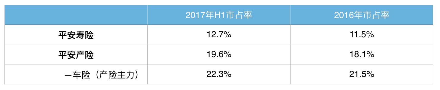 根据最新财报(2017年中报),其保费收入增速和构成如下: