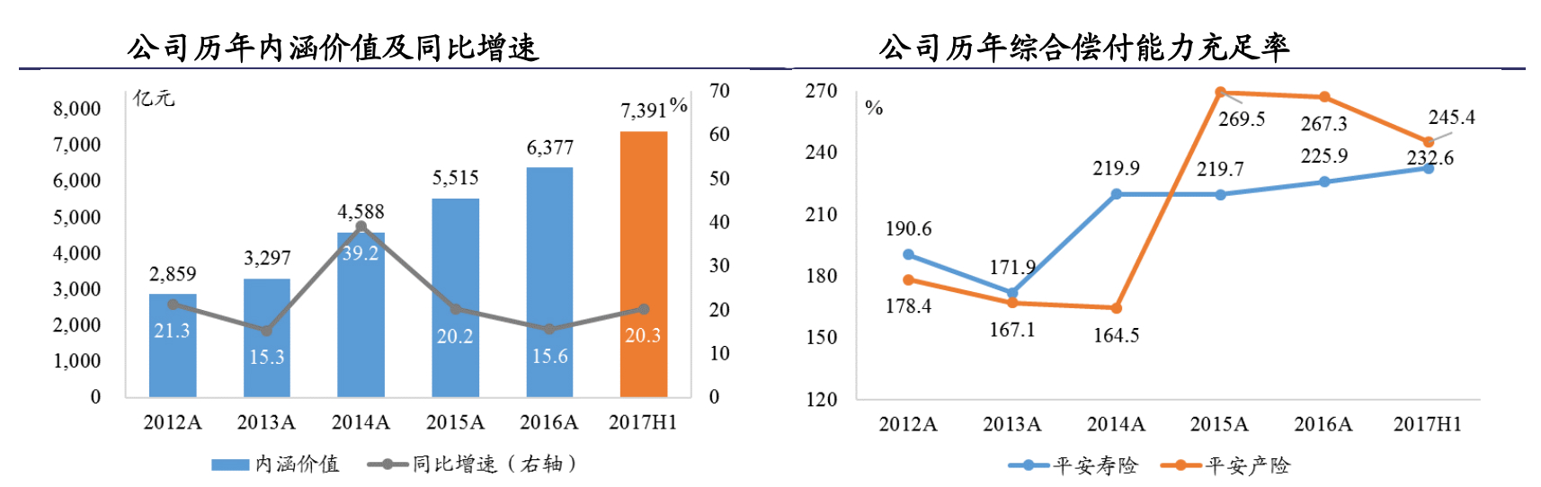 - 2017上半年中国平安新业务价值385.5亿元,同比高增46.2%,维持高增长态势。