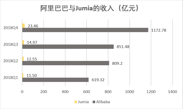 虽然公司号称是非洲的阿里巴巴,但是从收入规模上Jumia与阿里巴巴还存在相当大的差距。2018年第一季度阿里巴巴的收入规模为619.32亿元,而Jumia的收入只有11.5亿元(按照7.544元/欧元汇率计算)。
