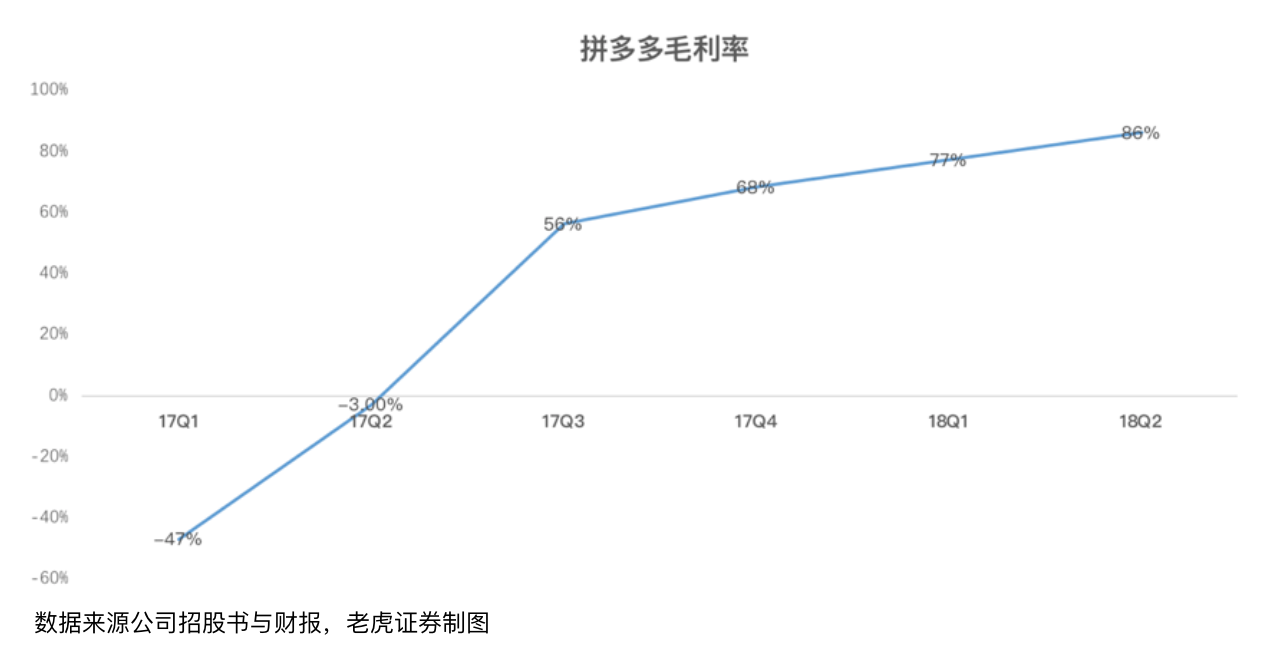 图片来源拼多多商家客户端 全面转型平台服务后,拼多多的毛利率迅速转正: