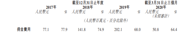 2017-2019年,佣金费用占区域渠道合作伙伴模式下收入的比例分别为41.4%、37.9%、36.7%,也就是佣金比例估算约为40%左右。