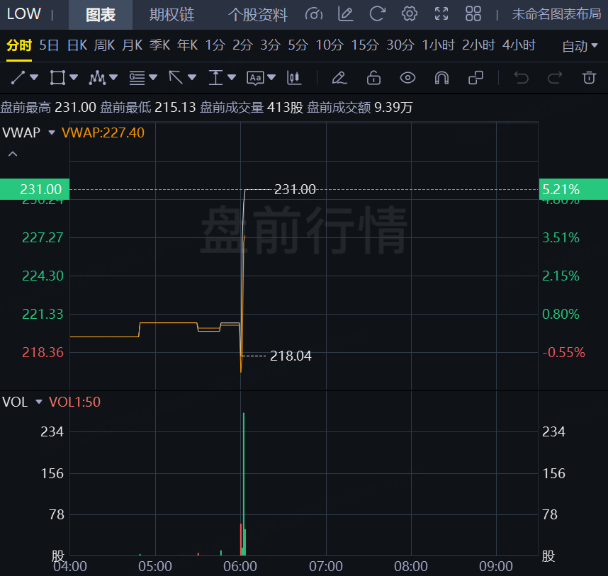 11月19日,劳氏美股盘前涨超5%!第三季度同店销售增长0.4%,预估增长1.02%;第三季度调整后每股收益3.06美元,预估3.00美元。