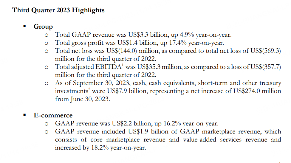 财报显示:Q3营收为33.1亿美元,较去年同期的31.5亿美元同比增长4.9%;毛利为14.4亿美元,较去年同期的12.3亿美元同比增长17.4%;净亏损为1.4亿美元,较去年同期的5.7亿美元同比收窄74.7%;稀释后的每股收益为-0.26美元。不及分析师预期的0.03美元。