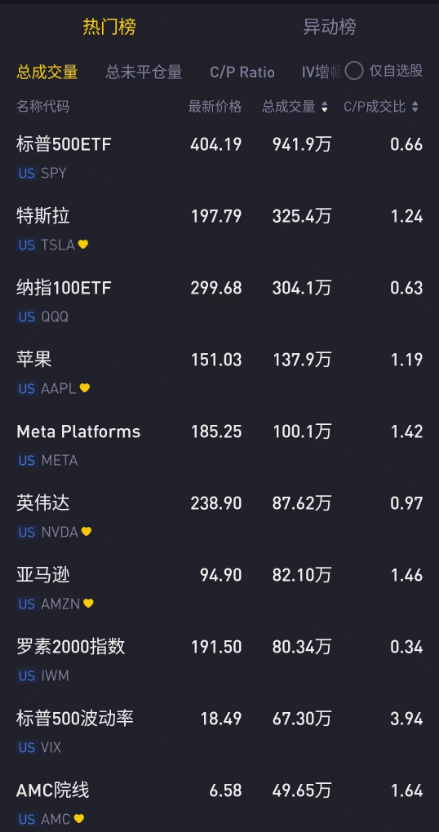 标普500ETF期权交易量依然居首,除指数ETF外,排名居前的基本都是大型科技股。特斯拉、苹果、Meta、亚马逊上周均整体收涨。特斯拉当周的“末日期权”交易在周五成交火爆,多空交织。