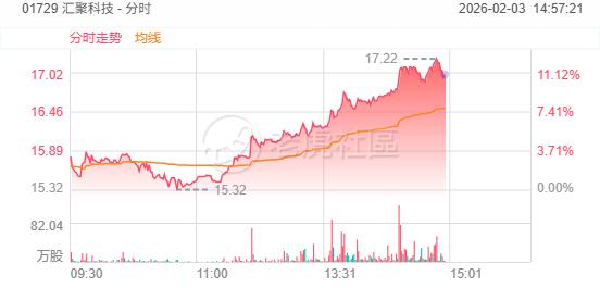2月3日,光通信板块午后延续涨势,汇聚科技涨超11%,FIT HON TENG、长飞光纤光缆涨超8%,华虹半导体涨近5%。