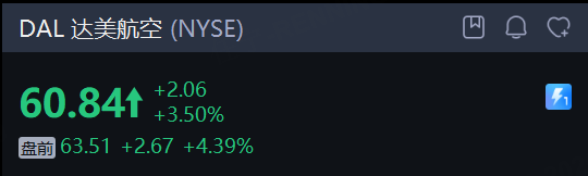 美股航空股盘前走高,达美航空上调了营收指引