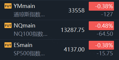 5月9日,美股指期货全线走低,截止发稿,道指期货跌0.38%,纳指期货跌0.48%,标普500指数期货跌0.38%;