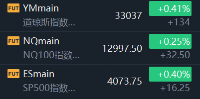 3月30日,美股指期货震荡走高,截止发稿,道指期货涨0.41%,纳指期货涨0.25%,标普500指数期货涨0.4%。