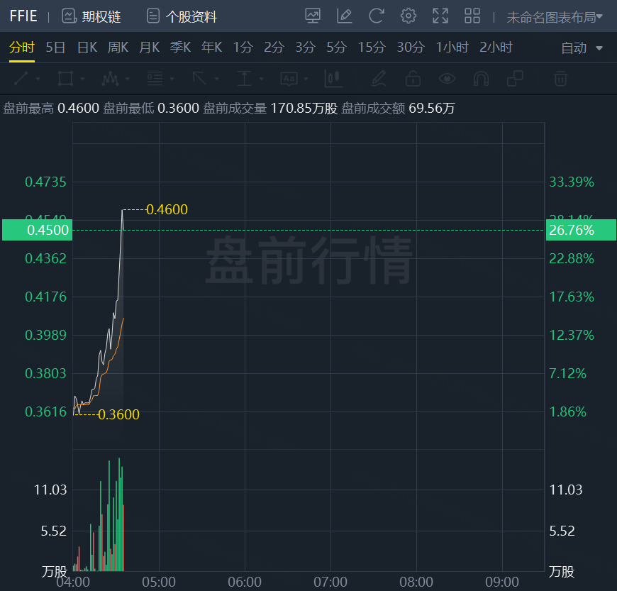 法拉第未来盘前涨近30%,此前宣布正式在FF ieFactory工厂开始生产(SOP)FF 91 Futurist。