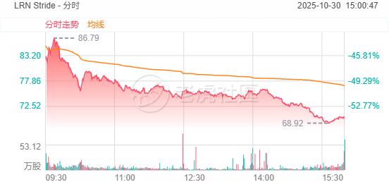 Stride股价在财报发布后大跌54%,原因是公司发布了保守的2026财年指引和技术问题,导致2024年6月以来的涨幅完全回吐。