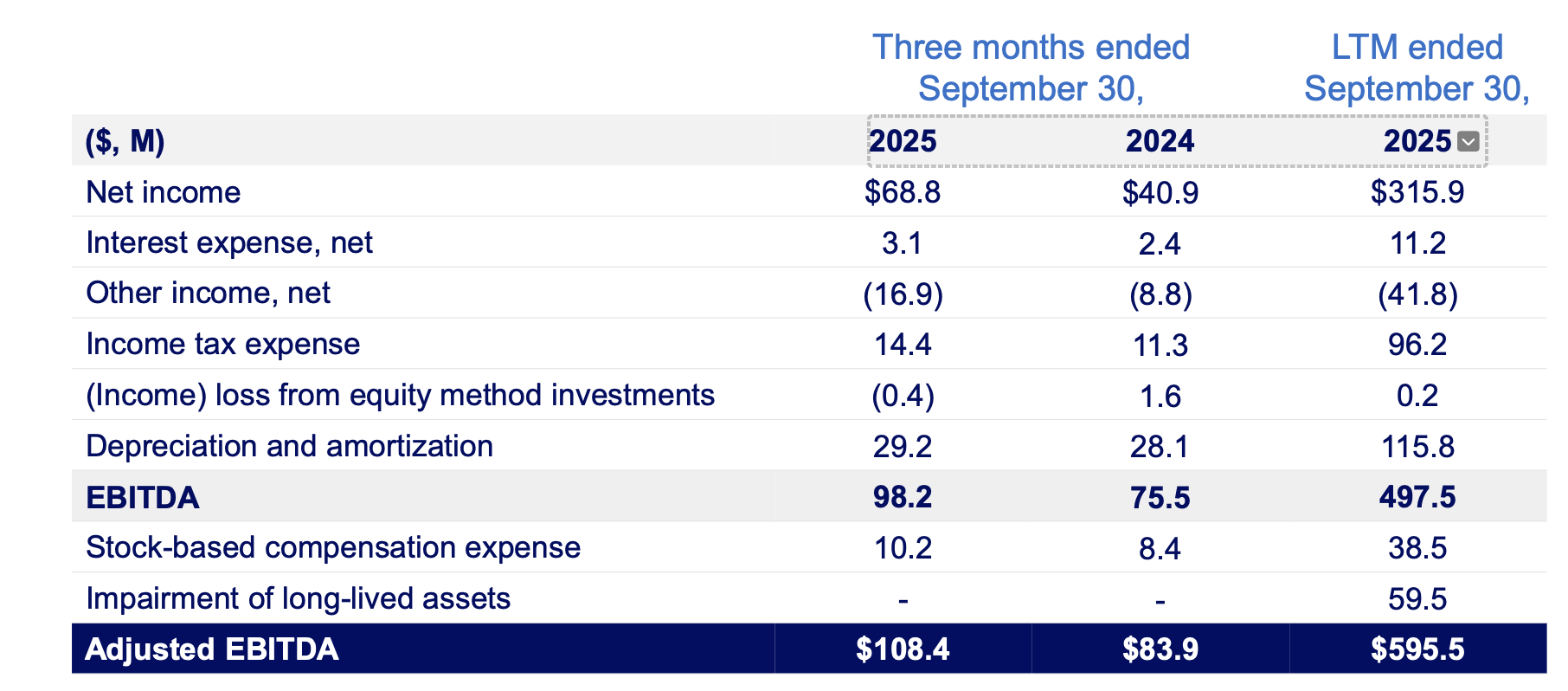 Stride调整后EBITDA