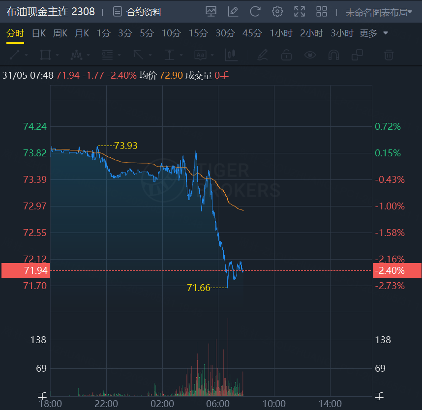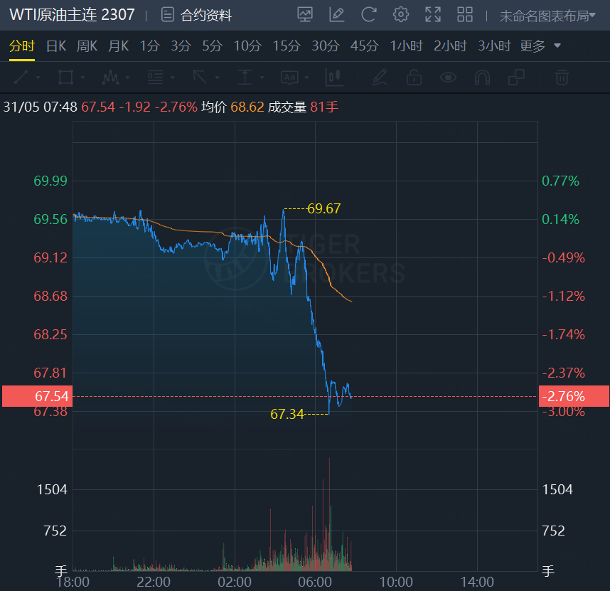 原油期货持续下挫,截止发稿,WTI原油跌2.76%,报67.54美元/桶;布伦特原油跌2.4%,报71.94美元/桶。