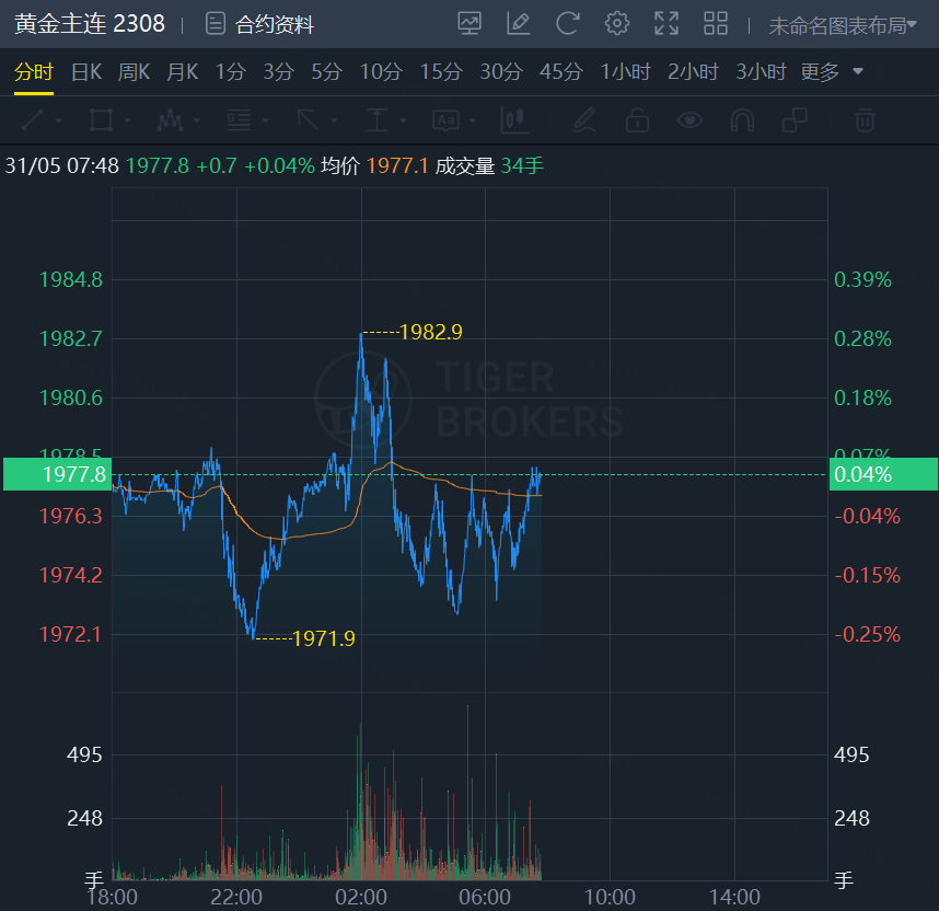 黄金期货微幅上涨,截止发稿,涨0.04%,报1977.8美元/盎司。