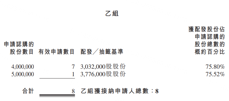 乙组头为4000000股,获配3032000股。