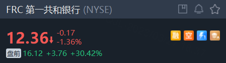第一公民银行股份盘前涨超6%,硅谷银行继续停牌,报道称第一公民银行将以165亿美元的折扣价格购买720亿美元的硅谷过桥银行资产。