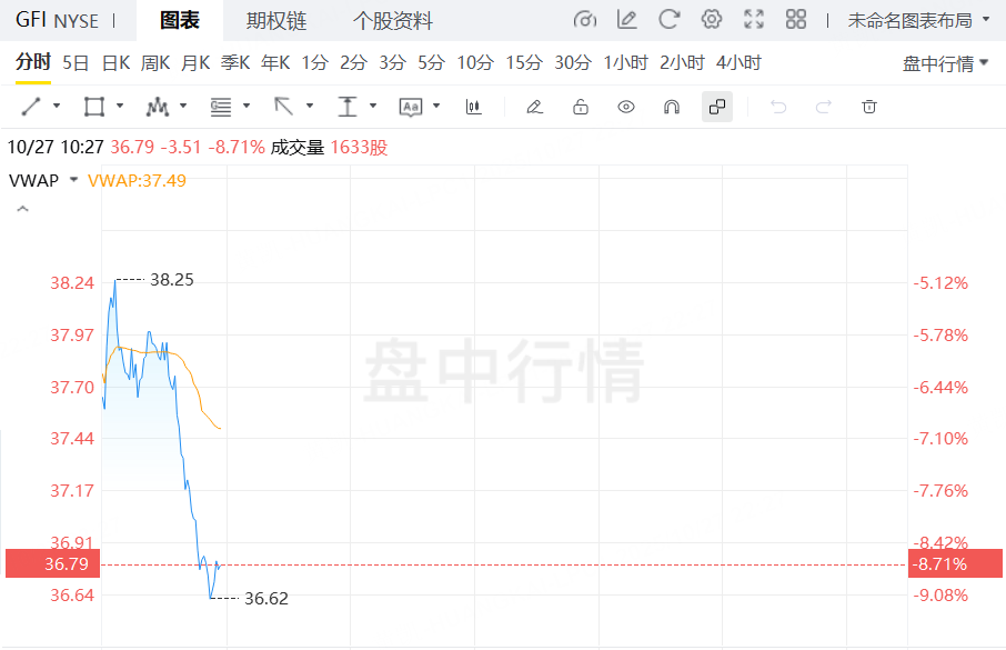 10月27日,黄金股盘中普跌,