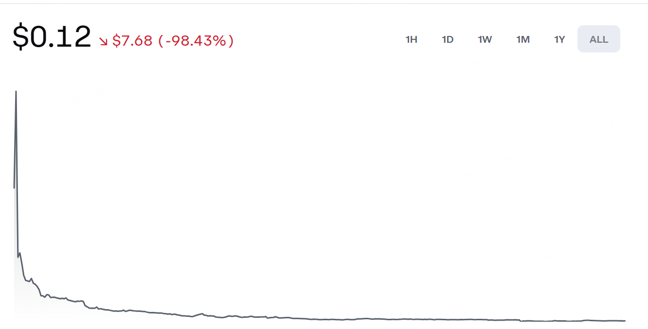 第一夫人Melania的Meme币MELANIA自1月的高点以来几乎归零,目前价格为12美分,累计暴跌98.43%。