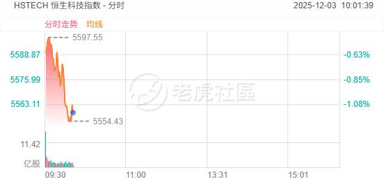 12月3日,港股低开低走,恒生科技指数跌逾1%;成分股中,