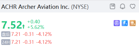 Archer Aviation跌超4%,资本支出指引高于预期;