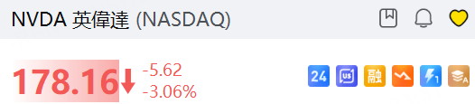 英伟达股价早盘下跌 3.06%,至 178.16 美元。