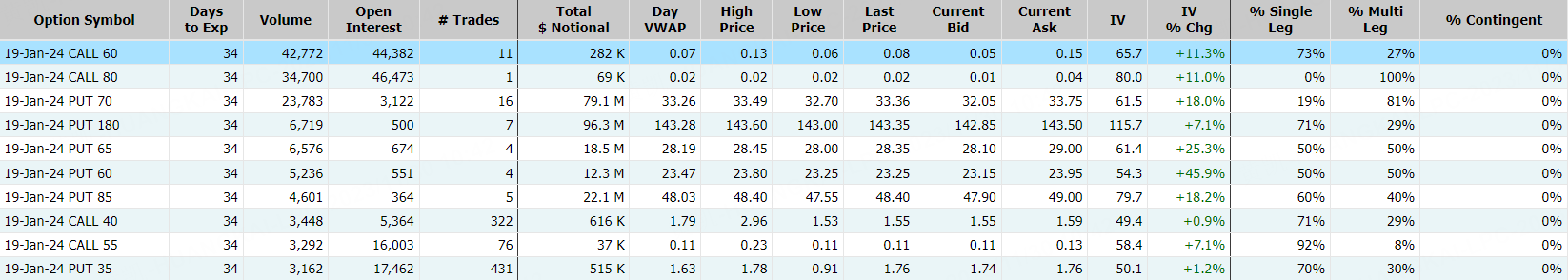 竞争对手迎来潜在利好,Sea股价被“吓崩”!Sea Ltd隔夜跌超7%,期权合约成交18.90万张。较90日平均成交量扩大2.7倍,其中看涨期权占全部期权交易的61%。2024年1月19日到期的60美元的行权看涨期权交易量特别高,共有42,772份合约交易。