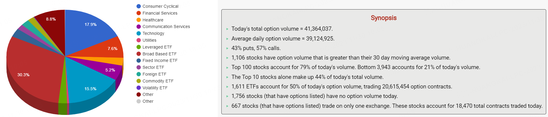 隔夜,期权市场总成交量达41,364,037张合约,其中,看涨期权占比57%。