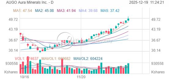 今年 7 月,加拿大矿业公司 Aura Minerals 进行了 1.964 亿美元的 IPO,以每股 24.25 美元的价格发行了超过 800 万股普通股。此后,该股已累计上涨近 92%。截至周三,公司市值约为 39 亿美元。