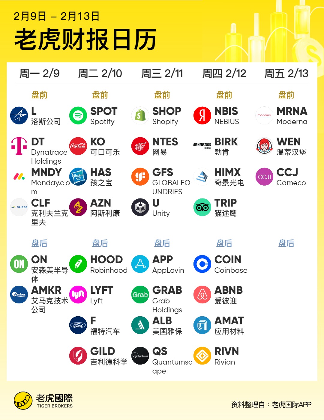 Robinhood、AppLovin、Spotify、Coinbase、NEBIUS等公司将陆续公布最新财报。