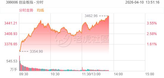 4月10日,A股创业板指午后涨超4%,深证成指涨近3%,上证指数涨0.74%,两市超4300家个股上涨;富时中国A50指数期货涨幅扩大至2%。