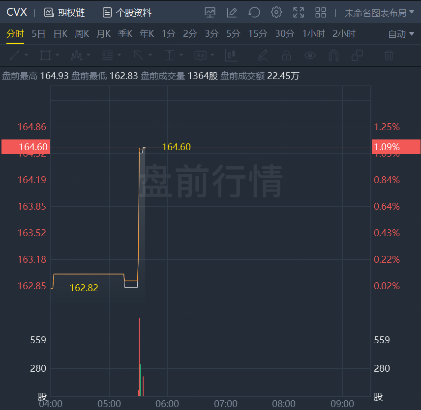 雪佛龙盘前快速拉升,现涨逾1%。