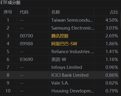 iShares安硕核心MSCI新兴市场ETF部分成分股