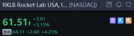太空概念股 Rocket Lab USA, Inc. 盘前涨超4%,公司与日本iQPS公司签署多次发射协议。