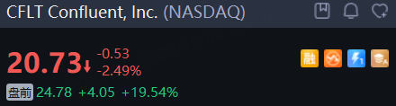 Confluent, Inc. 盘前大涨超19%,消息称公司正在探索出售事宜,其产品在支持人工智能发展方面拥有潜力。