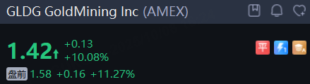 金价屡创新高,黄金股盘前普涨, GoldMining Inc 大涨超11%, AngloGold Ashanti Ltd ADS 、科尔黛伦矿业、金田涨超3%,哈莫尼黄金涨2.56%。
