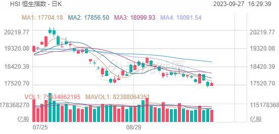 9月27日(周三),连续下跌创阶段新低的港股三大指数今日集体反弹。恒生指数收盘上涨144.97点,涨幅0.83%,报17611.87点;恒生科技指数收盘上涨16.6点,涨幅0.43%,报3833.87点;国企指数收盘上涨39.07点,涨幅0.65%,报6069.84点;红筹指数收盘上涨20.23点,涨幅0.58%,报3506.73点。