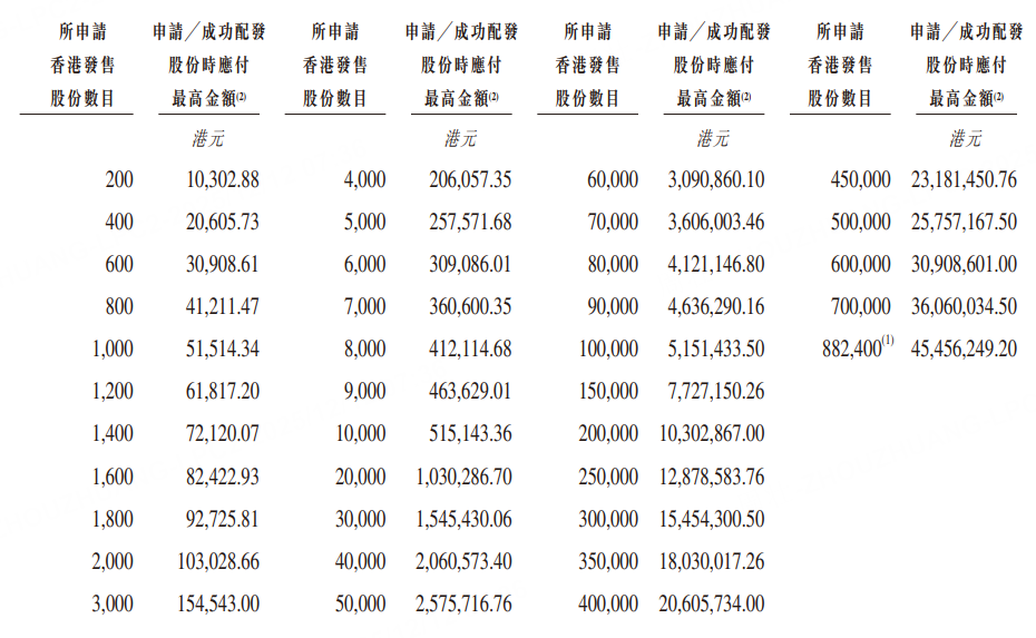 乙组门槛为100万股,申购所需资金约515.14万港元。