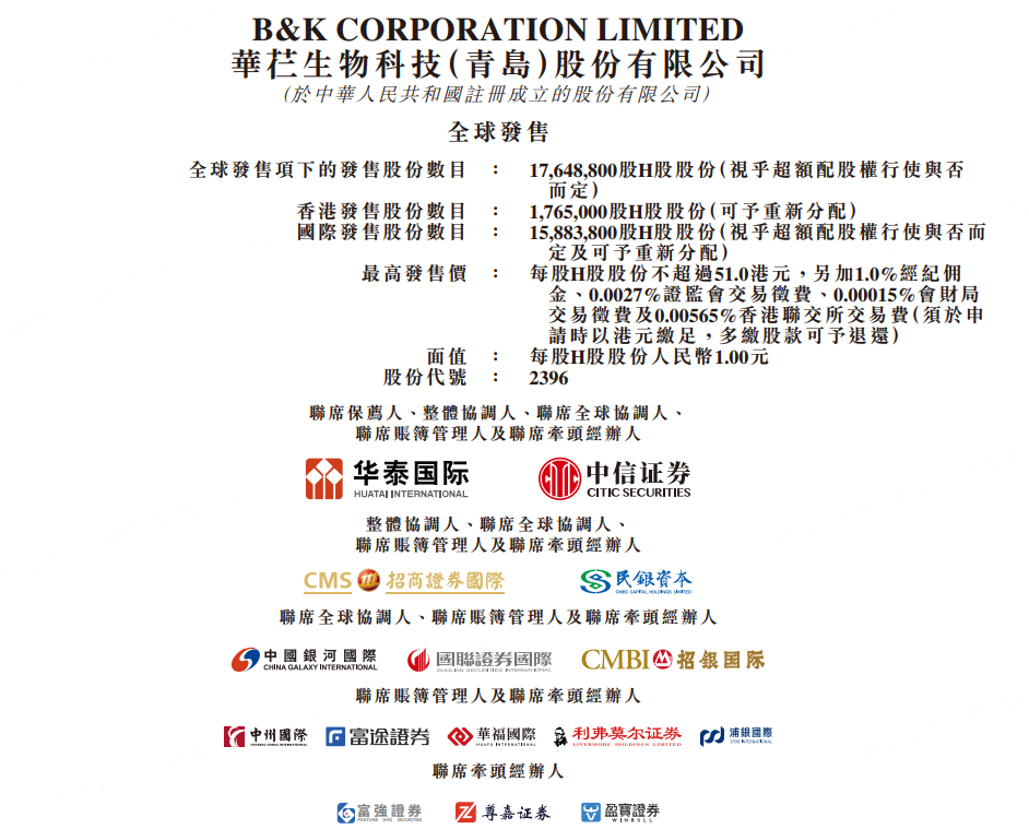 12月12日,华芢生物-B(02396)于12月12日-12月17日招股,公司拟全球发售1764.88万股H股,其中,香港公开发售占约10%,国家发售占约90%,另有15%超额配股权。每股发售价格为38.2-51港元。每手200股H股,预计H股将于12月22日开始在香港联交所买卖。