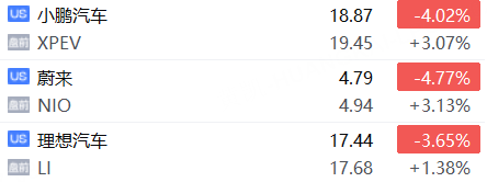 “蔚小理”盘前上涨,小鹏汽车、蔚来涨超3%,理想汽车涨超1%;