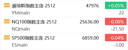 12月4日,美股三大股指期货涨跌不一,截止发稿,道指期货涨0.05%,纳指期货跌0.08%,标普500指数期货跌0.04%。