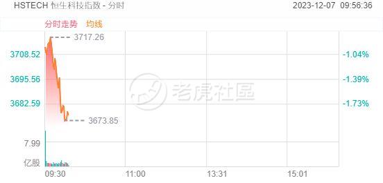 12月7日,恒生科技指数跌幅扩大至2%,恒指跌1.7%。