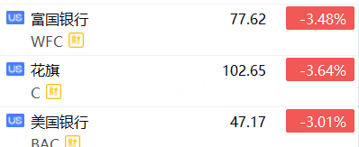 美股异动 | 银行股普跌挫,美国银行、花旗跌超3%
