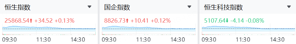今日港股窄幅震荡收官,三大指数分化。收盘时,恒生指数报25868.54点,涨0.13%;国企指数报8826.73点,涨0.12%;恒生科技指数报5107.64点,跌0.08%。盘中风格轮动明显,权重科网分化,本地券商与消费链条相对活跃。