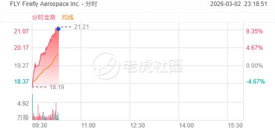 3月2日,美股太空概念股盘中拉升,Firefly Aerospace涨近10%,