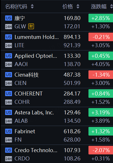 美股夜盘 | 光通信概念股集体拉升,AAOI涨超4%、Lumentum涨超3%