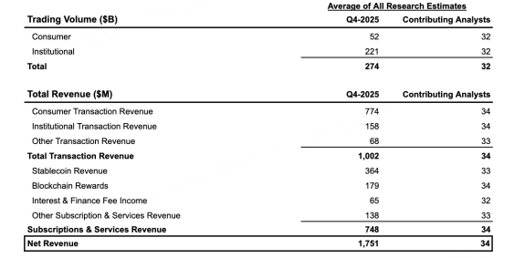 不过,公司业务结构正加速多元化。第四季度订阅及服务收入同比增长13.5%至7.27亿美元,其中稳定币收入由2.26亿美元增至3.64亿美元。Coinbase通过与Circle合作,从USDC相关储备利息中获得分成,稳定币业务成为重要“减震器”。分析师指出,订阅与稳定币收入占比提升,有助于平滑周期波动、降低对交易佣金的依赖。