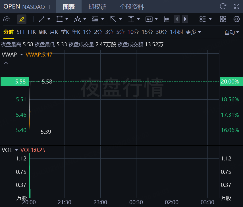 2月20日,美股夜盘时段,Opendoor飙升20%,第四季度营收和调整后EBITDA均超市场预期;